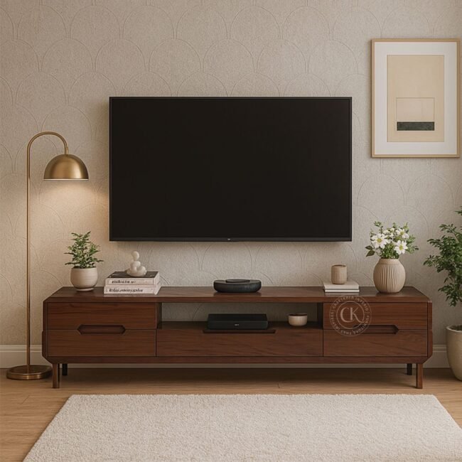 Astra Teak Wood TV Unit In Walnut Finish for Upto 75 Inch TV