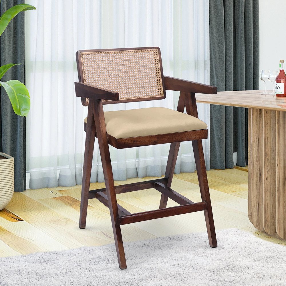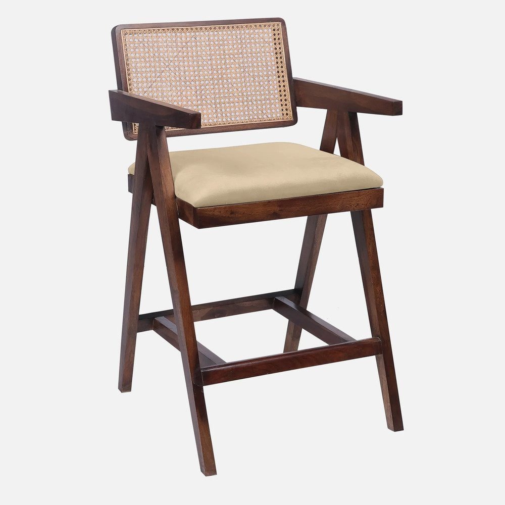 Aurano Sheesham Wood Rattan Bar Chair
