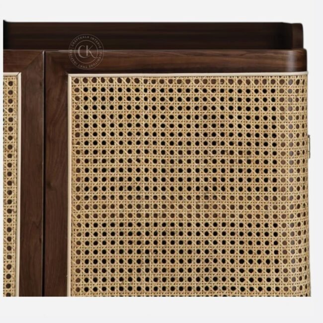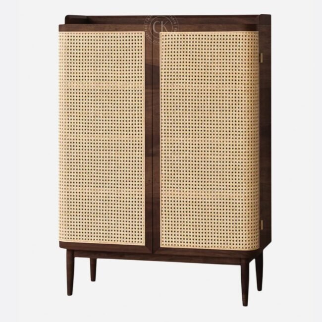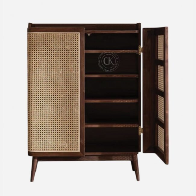 Avana Rattan Mesh Shoe Rack In Walnut Finish