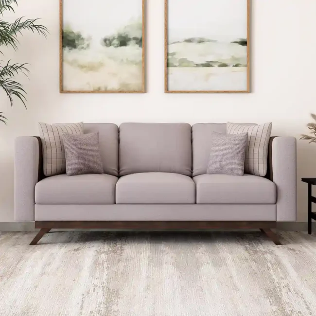 Bring a soft, modern touch to your space with this elegant beige sofa, thoughtfully designed for comfort and everyday living. Perfect for those searching for designer sofas for living room, this piece features clean straight arms, supportive seat cushions, and a neutral fabric tone that blends effortlessly with contemporary interiors. The sturdy wooden base and minimal silhouette add warmth while maintaining a refined, modern look.