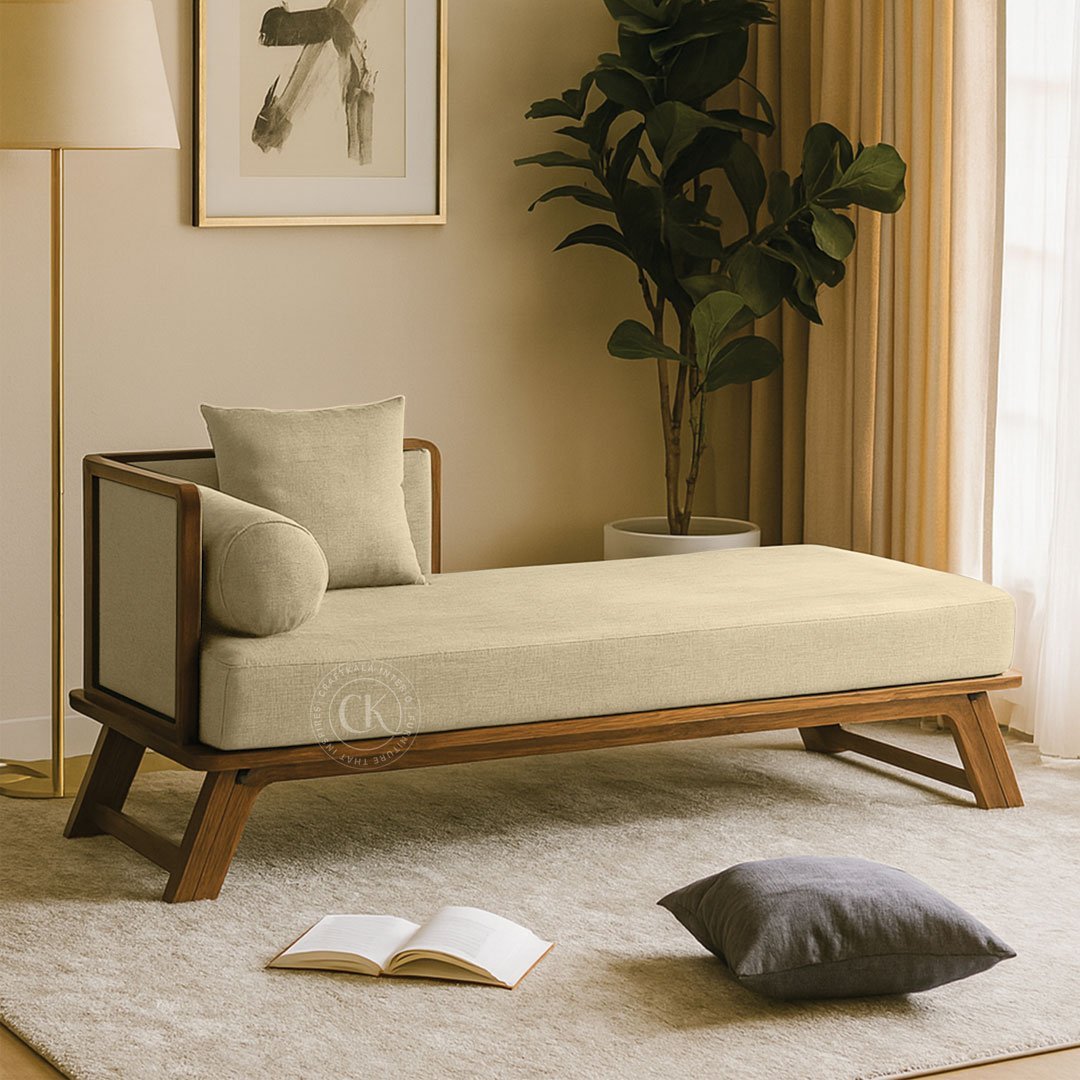The wide cushioned seat and angled backrest, upholstered in premium fabric, ensure you lounge in complete comfort whether you're reading, unwinding, or enjoying quiet moments. Crafted by artisans with over 20 years of expertise, this lounger is not just furniture it’s an experience.