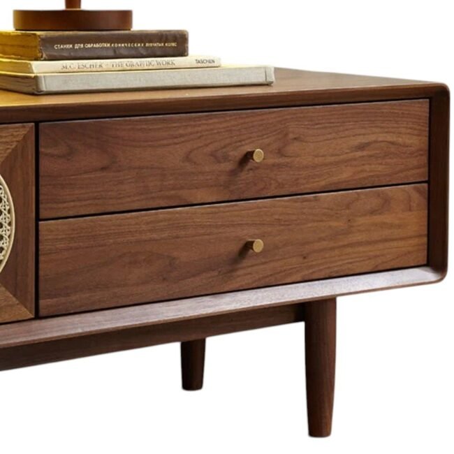 The Feron Sideboard stands out for its rich wood tone and solid construction. It’s elegant, durable, and practical for all your storage needs.