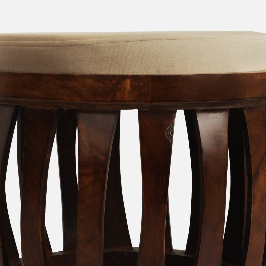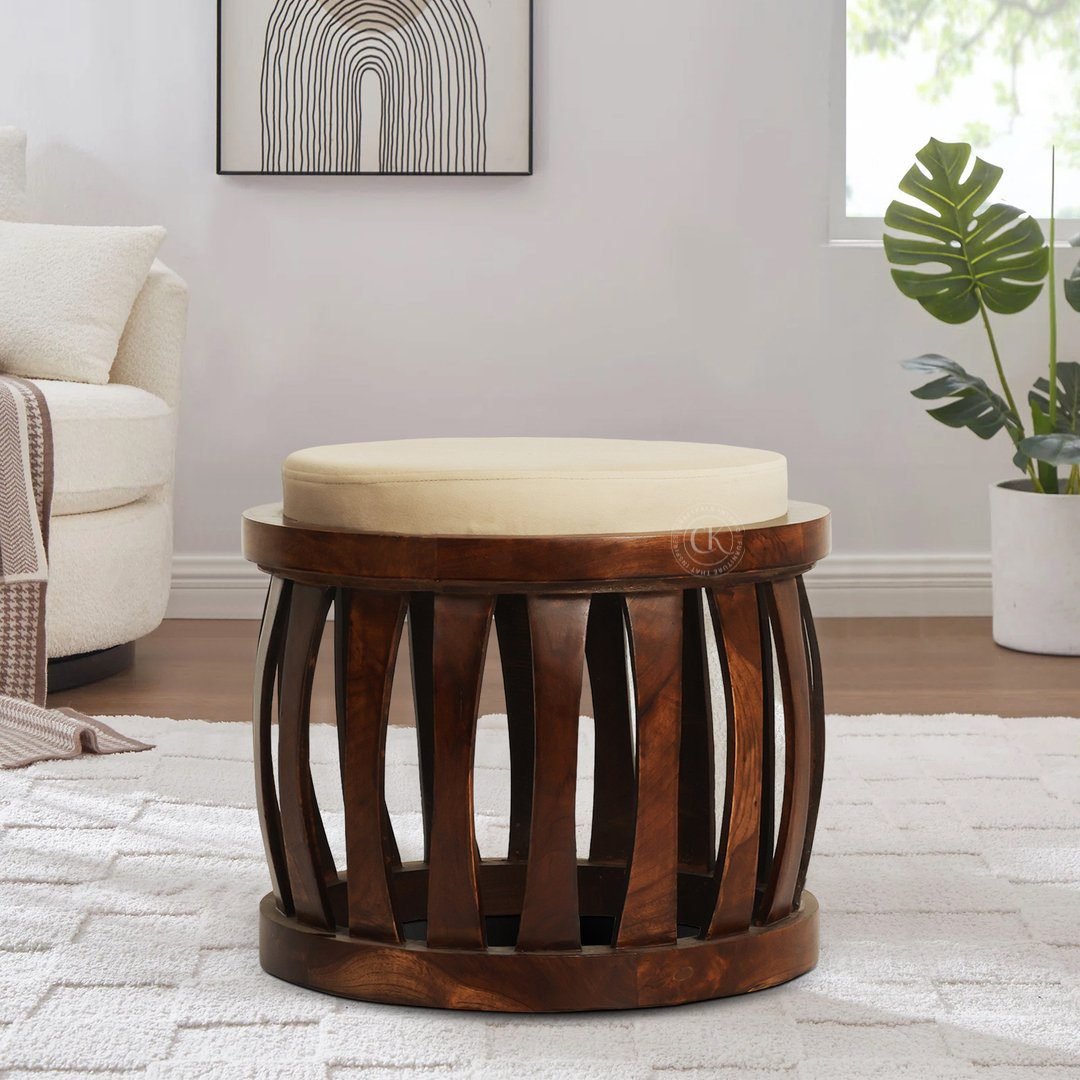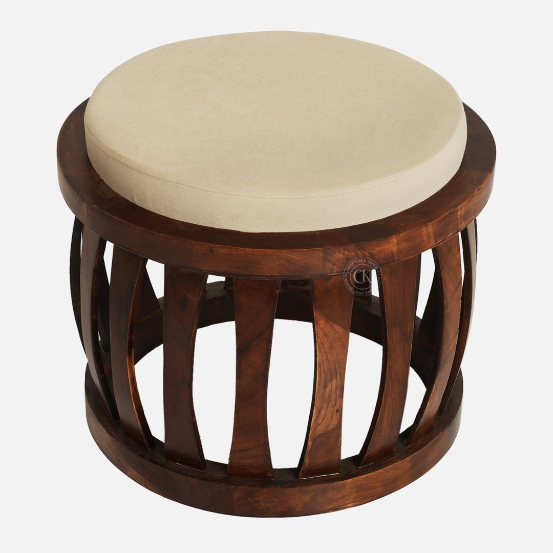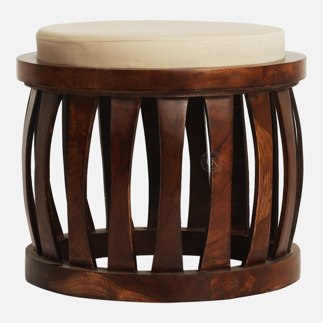 Bring home a perfect blend of craftsmanship and functionality with the Ismo Teak Wood Stool. Expertly handcrafted from premium solid teak wood, these round stools feature a striking open-slat design that adds both strength and contemporary appeal. The smooth walnut finish enhances the rich grain of the wood, giving each piece a timeless charm.