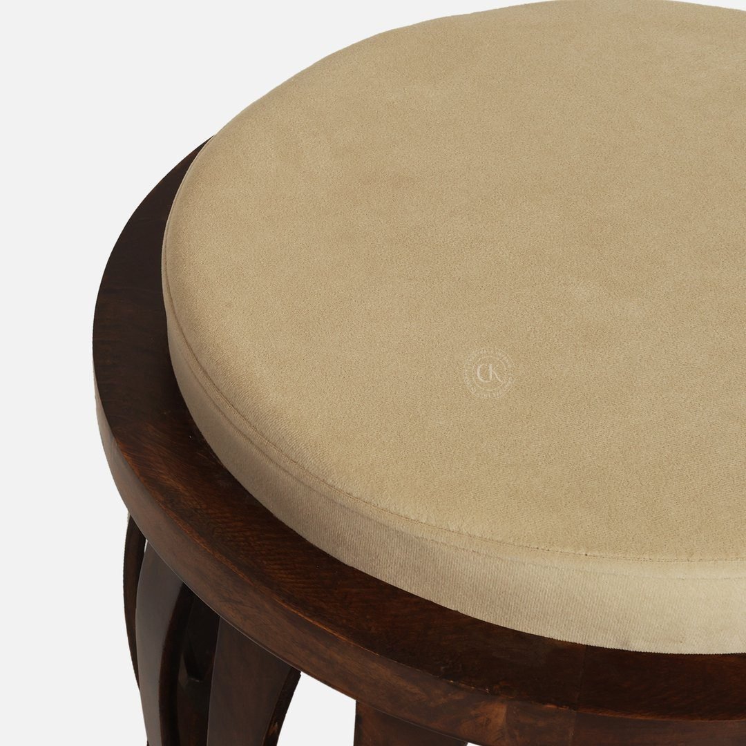 A rich walnut finish highlights the beauty of the teak grain, giving the stool a refined and elegant appearance that complements various décor styles.