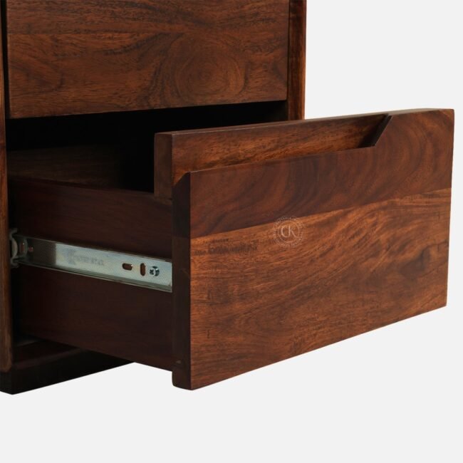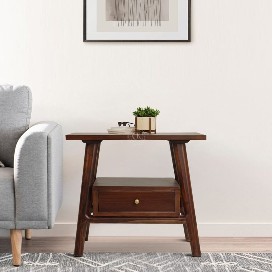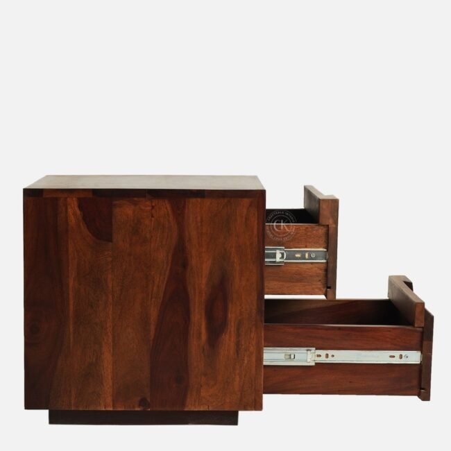Add timeless elegance and everyday functionality to your home with the Lafon Solid Wood End Table. Expertly crafted from premium Sheesham wood, this table showcases the natural grain patterns and rich hues that make each piece truly unique.Designed with two spacious drawers, it offers ample storage for bedside essentials, remote controls, or small accessories