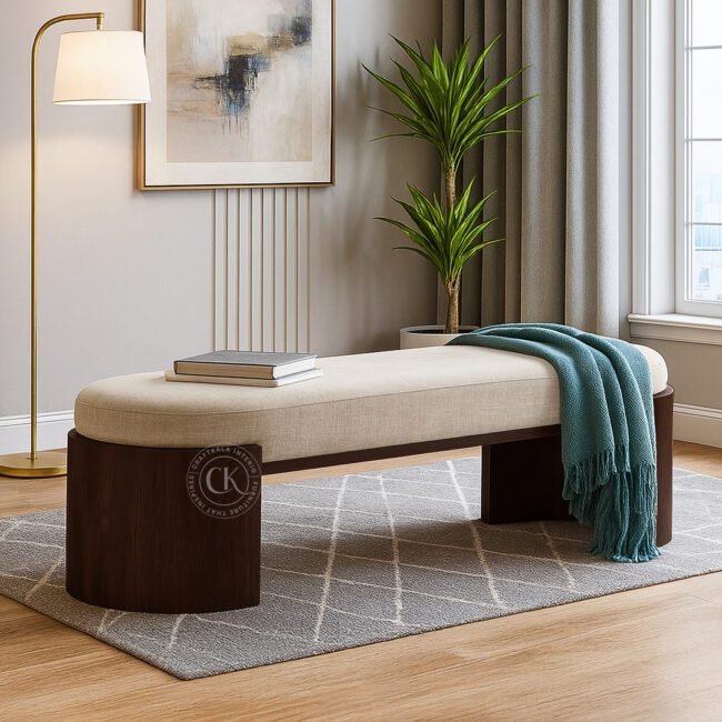The Marino Bench Is A Contemporary Piece That Combines Style And Functionality. Designed With A Solid Wood Center Support For Strength, And Plywood Legs Finished With Rich Laminate For A Sophisticated Look, This Bench Adds A Modern Touch To Any Space. The Soft Upholstered Seat Offers Comfortable Seating, Making It Perfect For Entryways, Bedrooms, Or Living Areas.