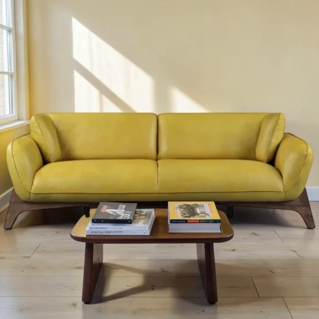 Bring warmth and character to your living space with the Mustard Muse Sofa. Designed for modern homes, its rich mustard tone adds a vibrant yet balanced touch, making it a perfect statement piece for any living room.