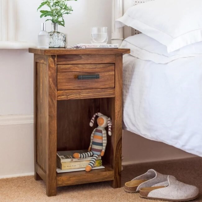 This elegant bedside table combines functionality with timeless design, offering a perfect spot for your night lamp, books, or morning coffee.