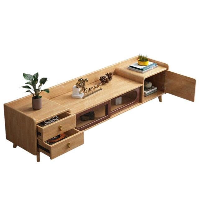 The Quenlo TV Unit is the definition of minimal elegance. Its natural wood hues and ample storage make it a practical and aesthetic choice for any home.
