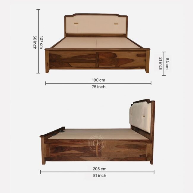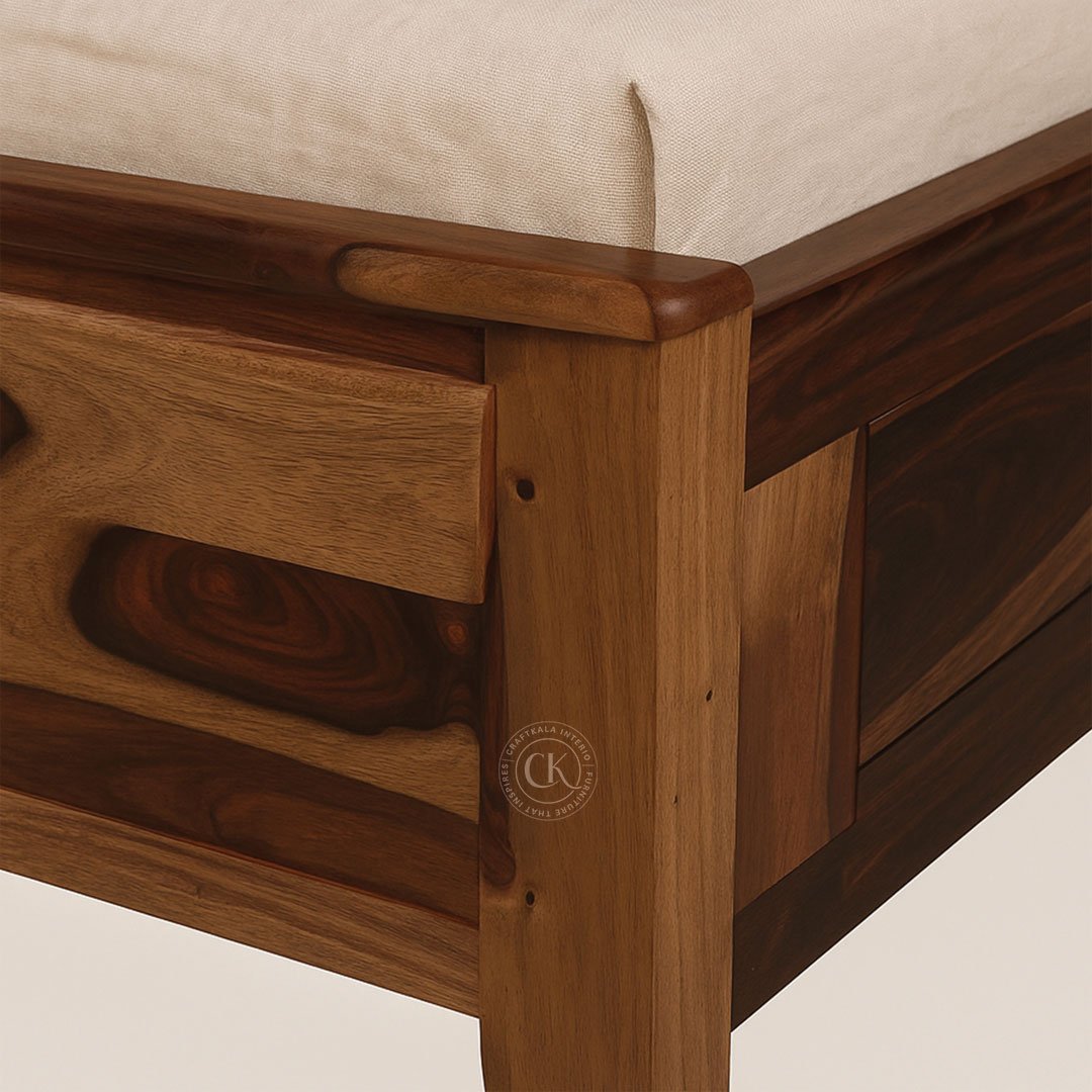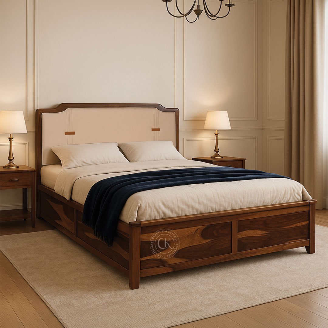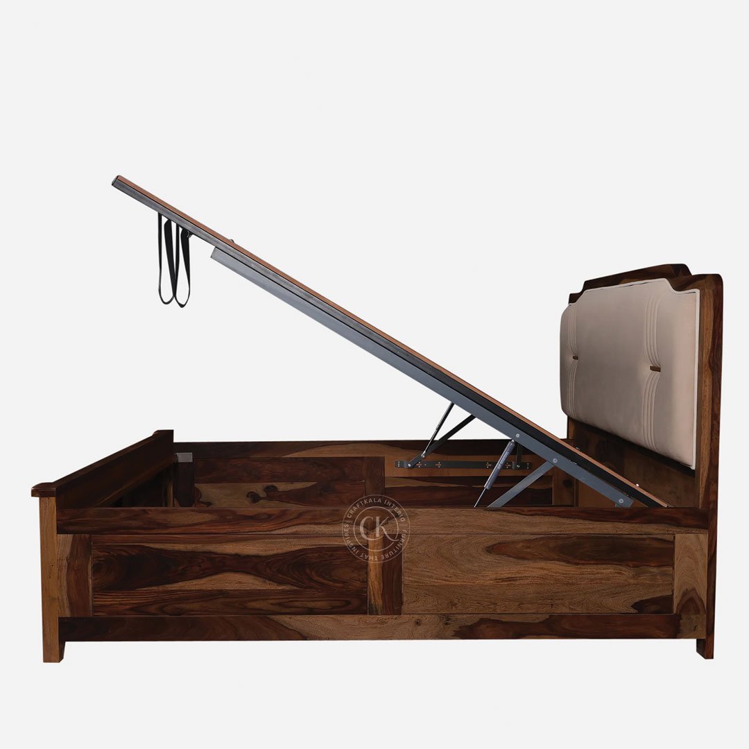 Reuford Solid Sheesham Wood Bed With Hydraulic Storage