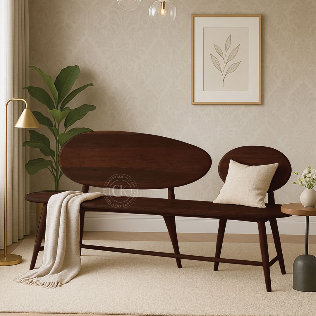 Solis Sheesham Wood Designer Bench In Walnut Finish