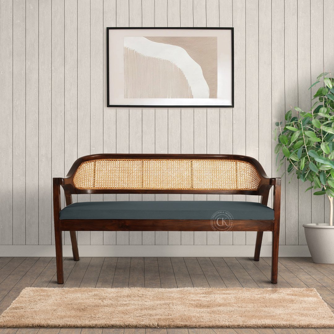 Add timeless elegance to your home with this beautifully handcrafted Cane-Back Wooden Bench. Made from premium solid Teak wood, this bench blends natural warmth with a modern aesthetic. The gently curved backrest features a classic handwoven cane pattern, offering both style and breathability for a comfortable seating experience.