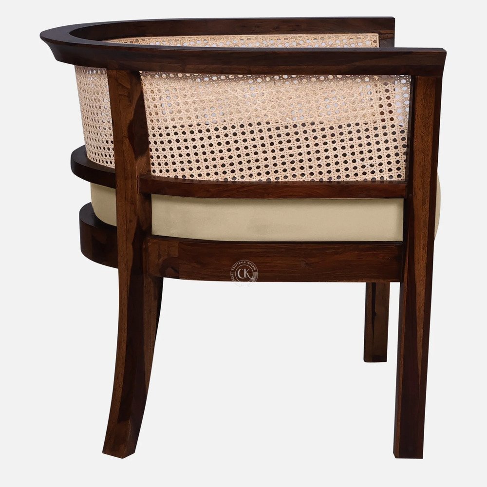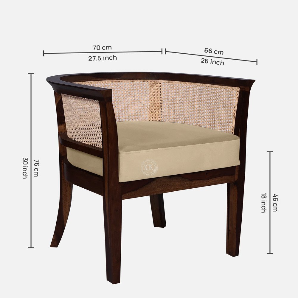 Elevate your home decor with our stunning Sheesham wood arm chair, expertly crafted with a cane mesh back and plush cushion seating. Made from high-quality, solid Sheesham wood, this chair exudes warmth and sophistication. Available in a range of colors, it’s perfect for adding a touch of elegance to your living room or bedroom. Experience the perfect blend of comfort and style with this timeless piece. Handcrafted with love, this chair is sure to become a family heirloom.