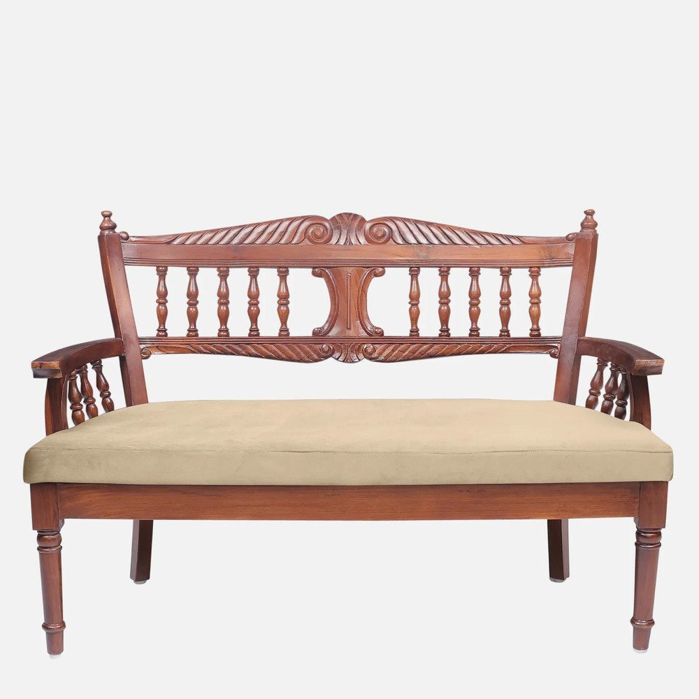 Bring warmth and timeless sophistication to your interiors with this beautifully crafted living room bench, made from premium solid teak wood. Its refined silhouette, smooth finish, and graceful detailing make it a seamless addition to both modern and traditional décor settings. Comfortable and Durable Wooden Bench Design. Thoughtfully designed with a hand-carved backrest, smooth armrests, and a sturdy wooden frame, this bench offers exceptional comfort and reliable support. The durable craftsmanship ensures long-lasting everyday performance while preserving its elegant and sophisticated appeal. Perfect Seating Solution for Relaxation and DécorIdeal for relaxing, entertaining guests, or upgrading your décor, this two-seater living room bench combines timeless style with practical functionality. Its versatile design makes it a stylish seating solution for living rooms, hallways, entryways, or cozy lounge corners.