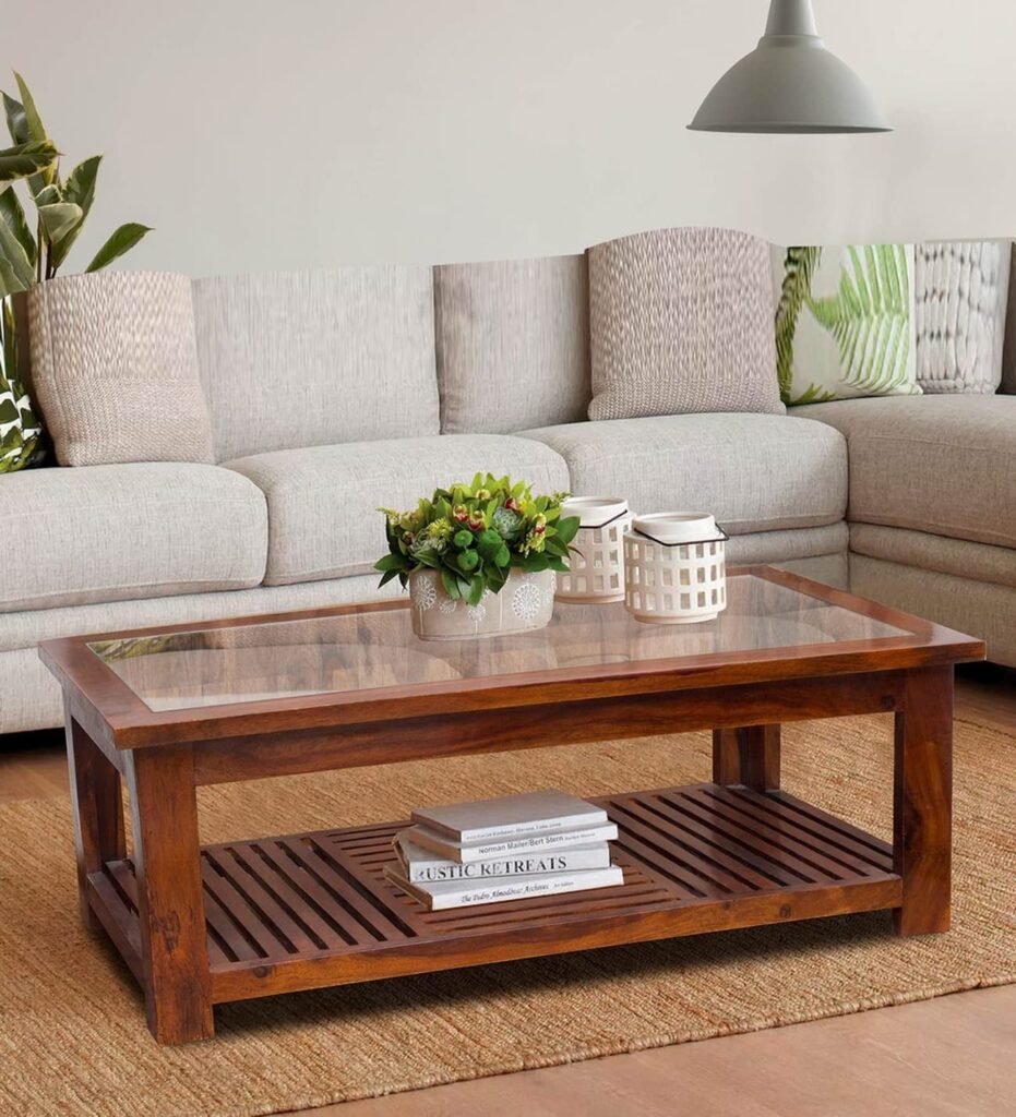 5. Wooden Coffee Table Designs with Glass Top